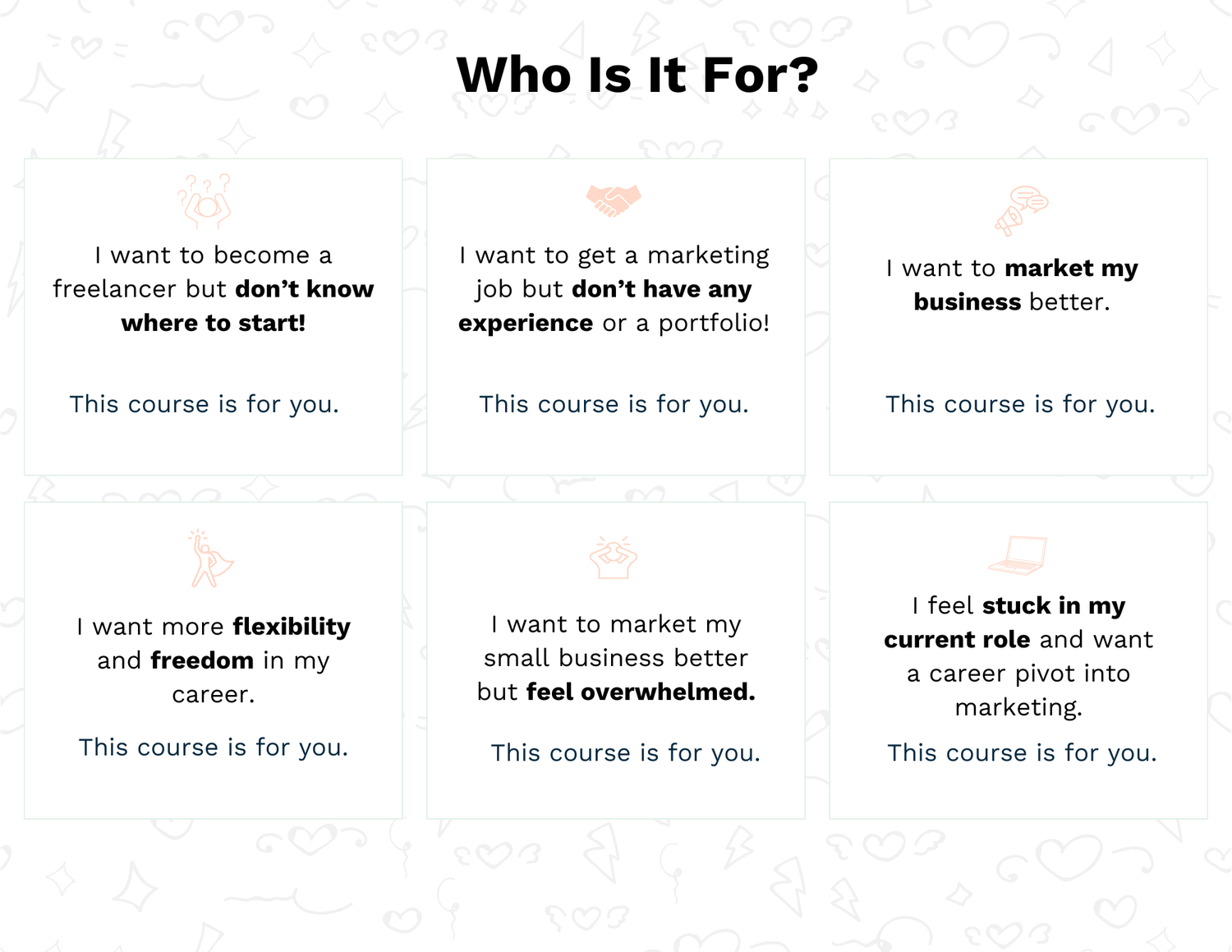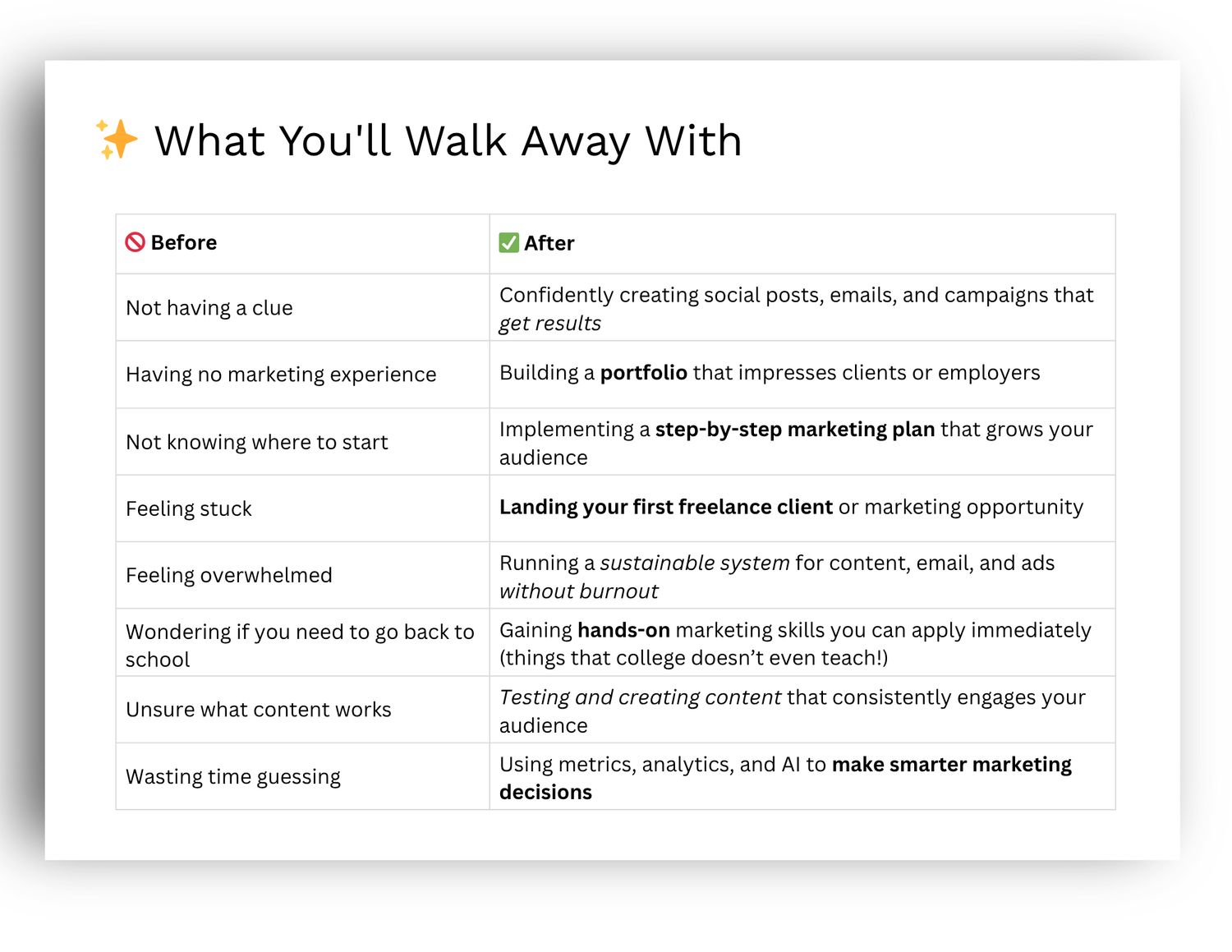 It's like trade school for marketing: learn by doing, build a portfolio, and start gaining real-world experience.